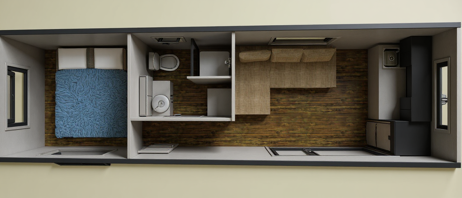 DUVAR - TAVAN KATMANLARI: İÇTEN DIŞA AHŞAP SUNTALAMMDF LAM LEVHA-ISI YALITIM KATMANI-BOYALI SİNÜS OLUKLU SAC LEVHA- MODELDEKİ YERLERDE SU BAZLI VERNİK KORUMALI AHŞAP LAMBRİ